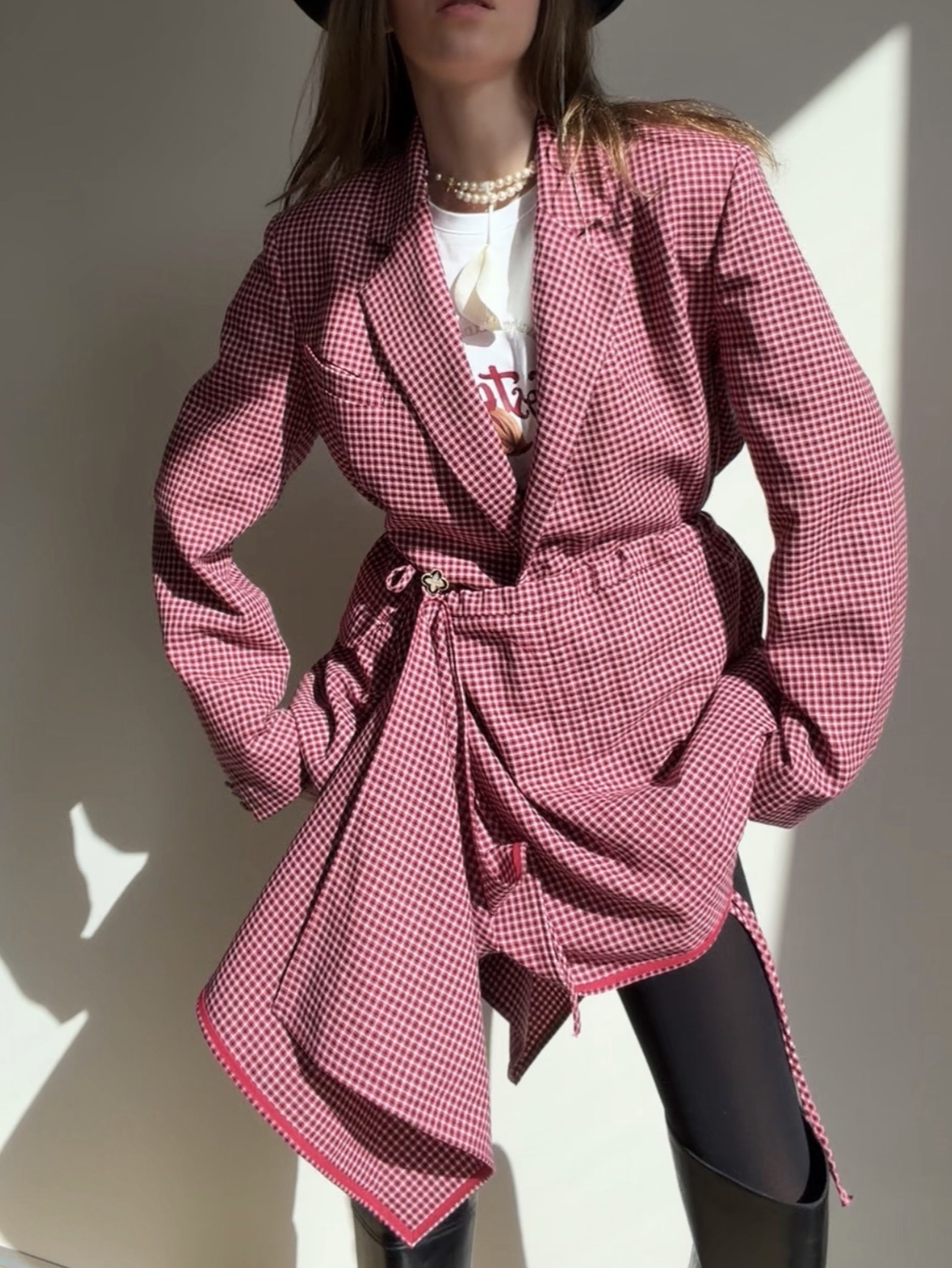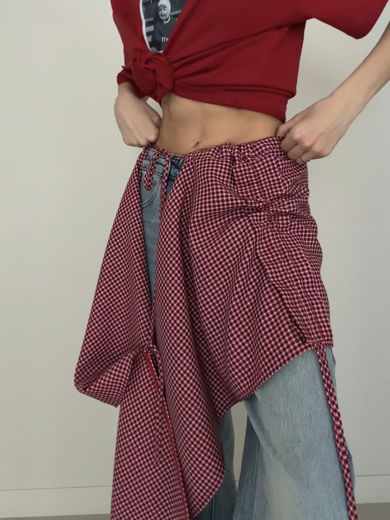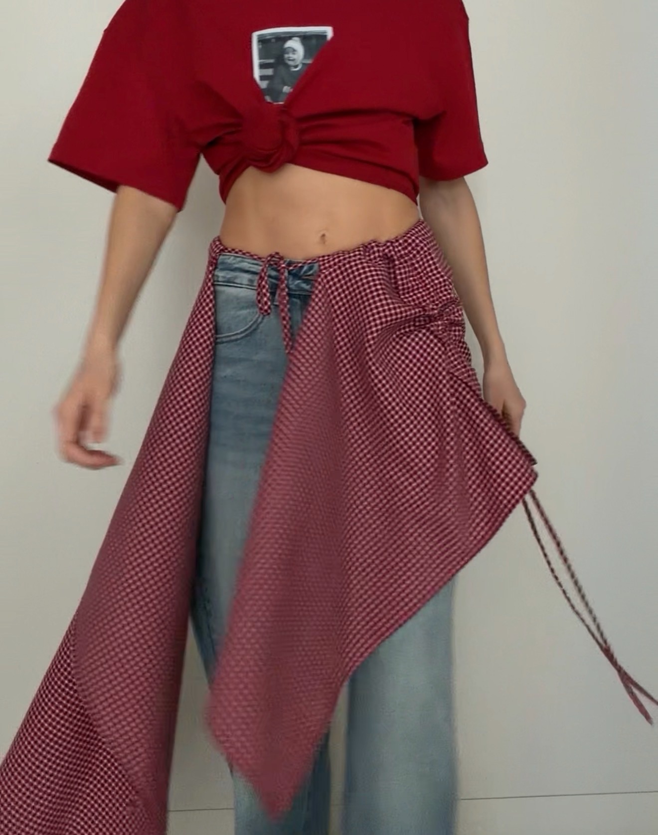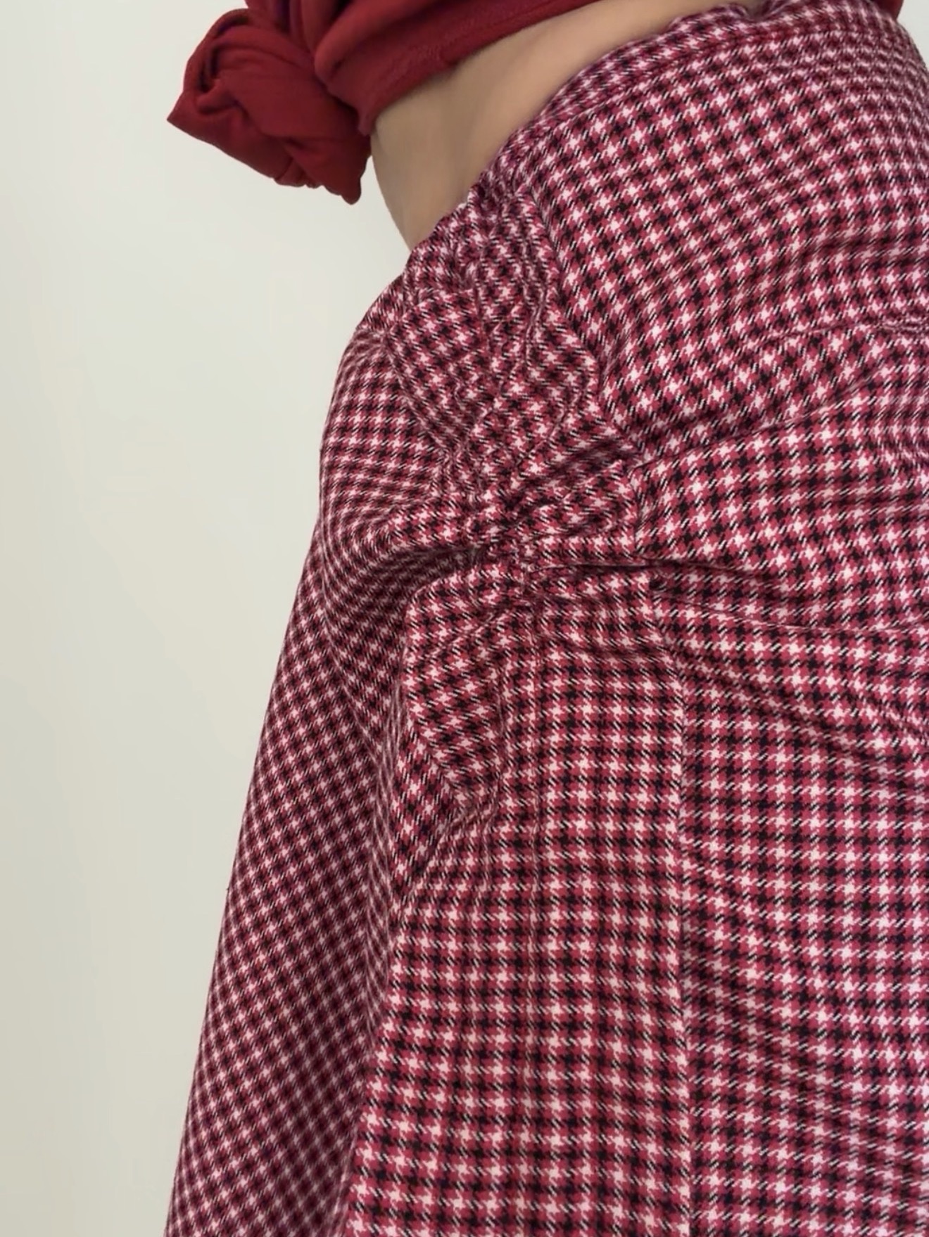 баска-фартук с идеально закрытыми швами: обработаны малиновой бейкой