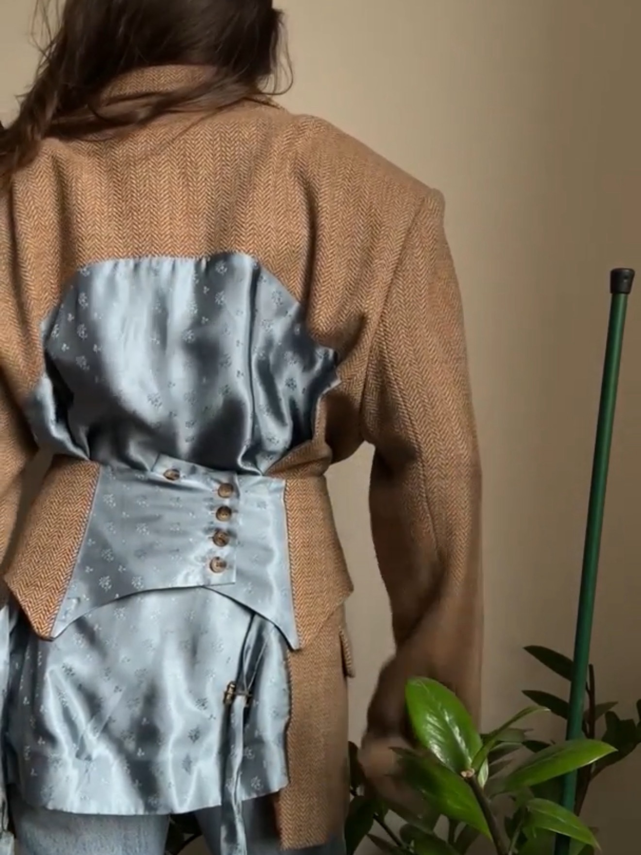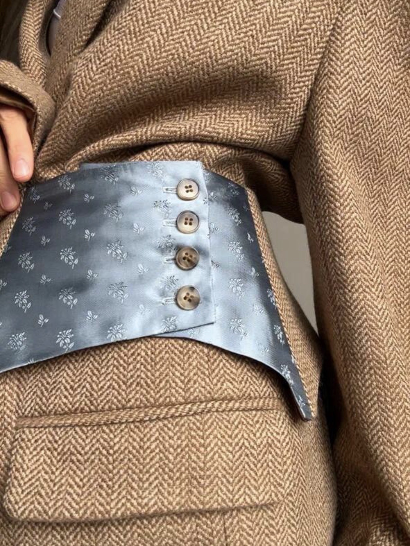 посадка баски регулируется нескольким рядом пуговиц: можно посадить близко по фигуре или дать большей свободы, если выбрать подходящий размер