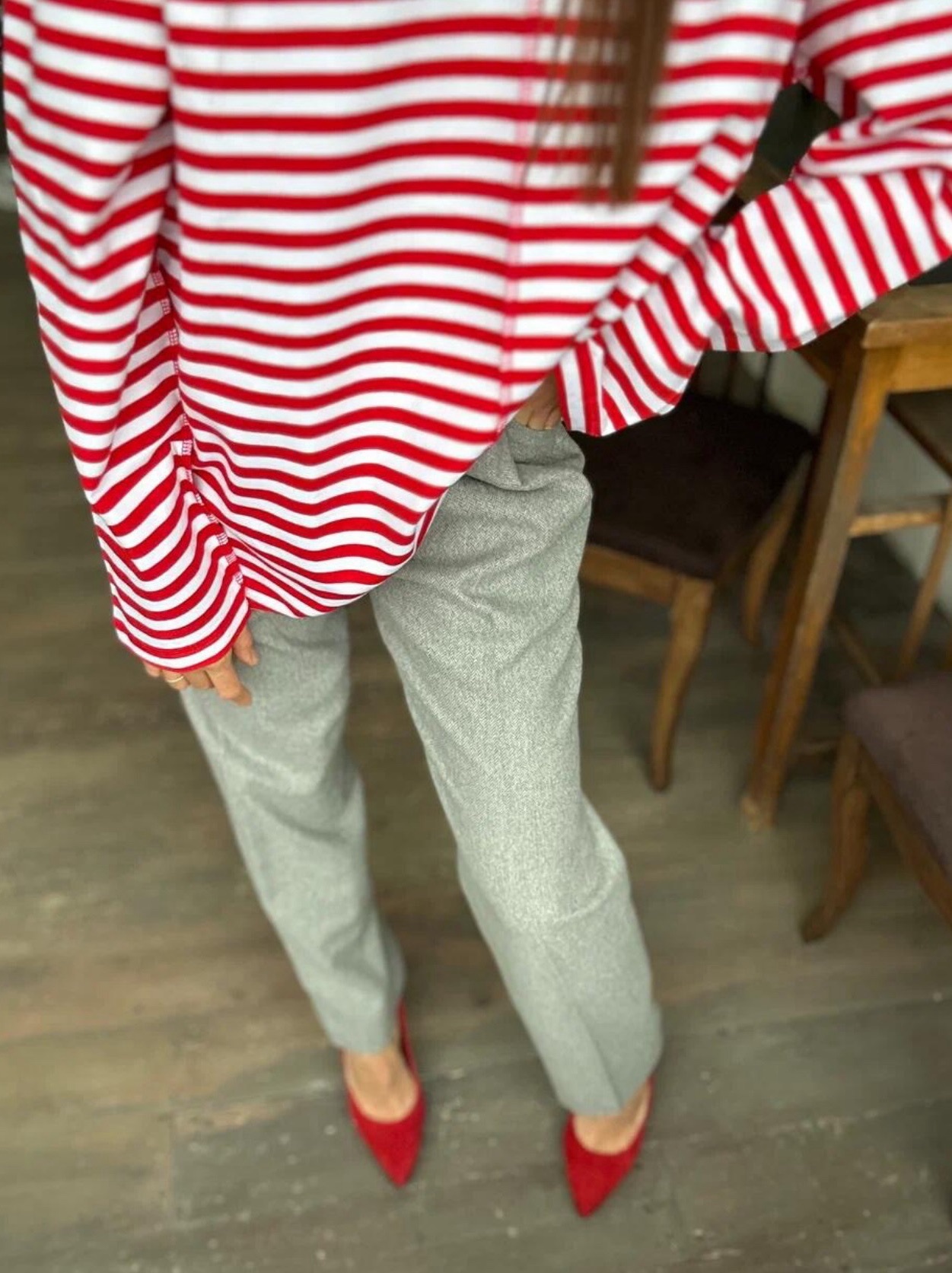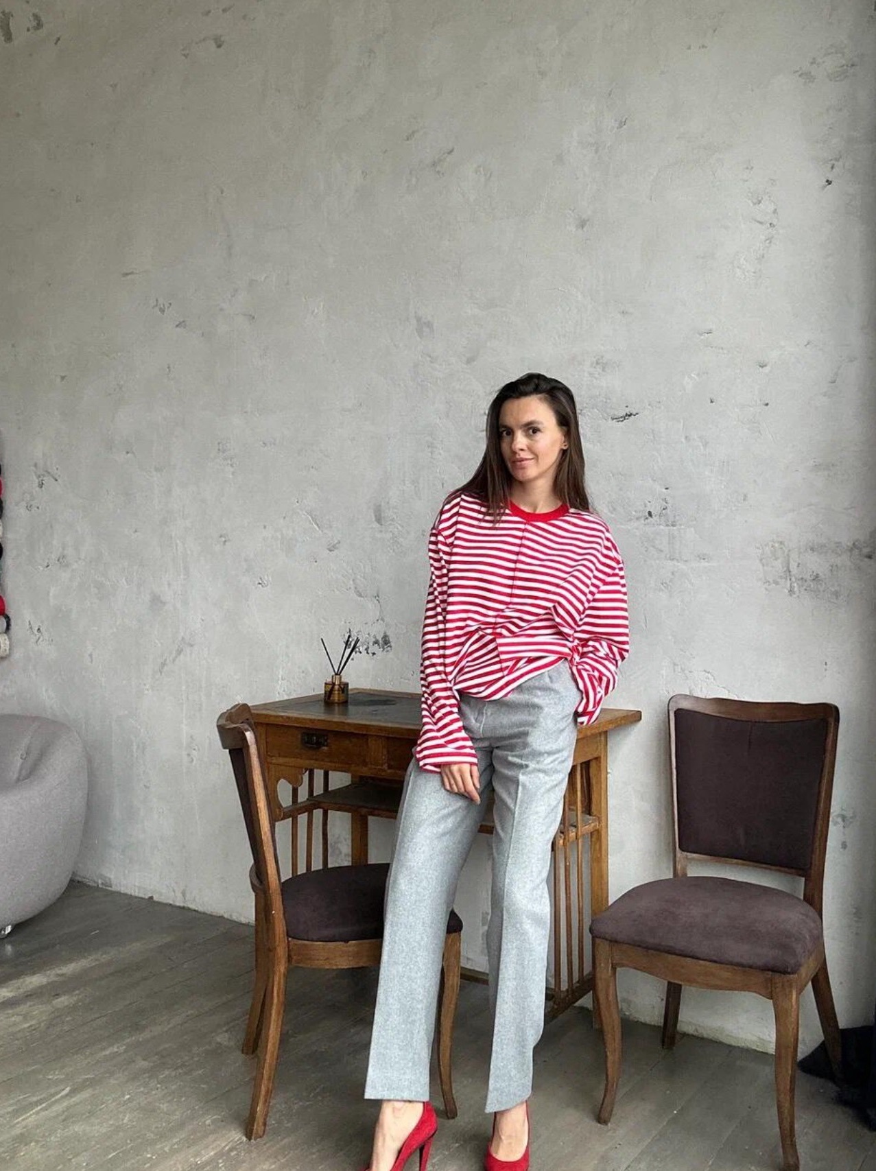 Представлена в двух цветах: ягодно-белый, чёрно-белый. Тельняшка станет стильным дополнением любого образа, будь то повседневный лук или отдых на море, путешествие.