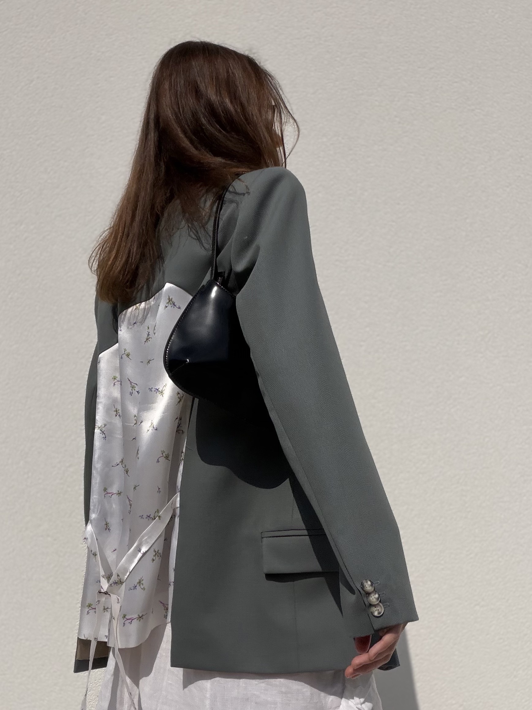Жакет двубортный со свободной посадкой на 4х пуговицах. Фигурная спинка выполнена из вискозы